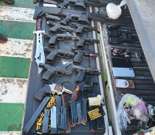 Na ação foram apreendidas duas submetralhadoras, oito pistolas e dois revólveres foram apreendidos, além de munições e carregadores.