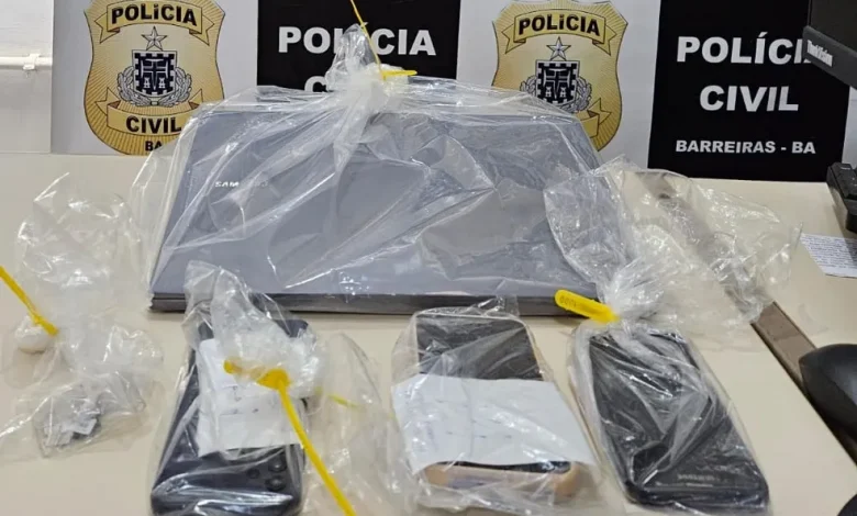 Foram aprendidos um notebook e aparelhos celulares que serão encaminhados para o Departamento de Polícia Técnica (DPT) para serem periciados.