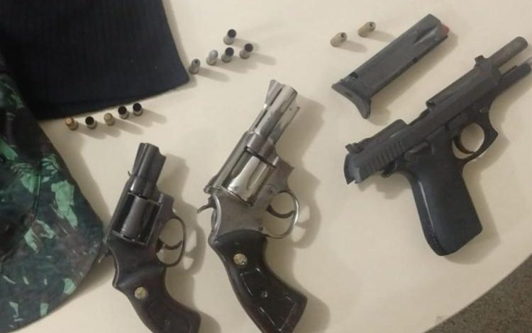 Também foram apreendidos uma pistola calibre 40, dois revólveres, duas balaclavas e roupas camufladas. A ocorrência foi registrada na Corregedoria da PM.