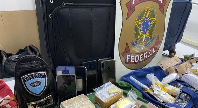 Os agentes da PF, apoiados pela Polícia Militar, vistoriaram dois veículos Corolla na rodovia Castelo Branco, no sentido capital, e nos automóveis encontraram três malas com o material, totalizando 77 kg, além de uma quarta mala com documentos.