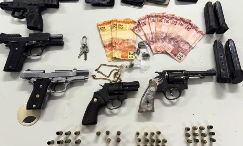 Ainda durante a ação, dois indivíduos foram presos em flagrante. Com o grupo, foram apreendidas armas de fogo, munições, motocicletas, dinheiro em espécie e outros materiais.
