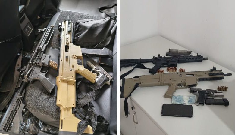 Com ele foram encontrados, uma submetralhadora SMT calibre 9mm, uma pistola com um carregador e 11 munições, uma carabina 9mm com 44 munições, dois carregadores calibre 9mm e dinheiro em espécie. Todo o material apreendido foi apresentado no DHPP para a tomada das medidas cabíveis.