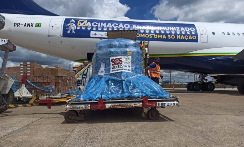 Além da carga, o transporte contará com concentradores de oxigênio e uma tonelada de máscaras. O volume de oxigênio em metros cúbicos não foi informado pela empresa aérea.