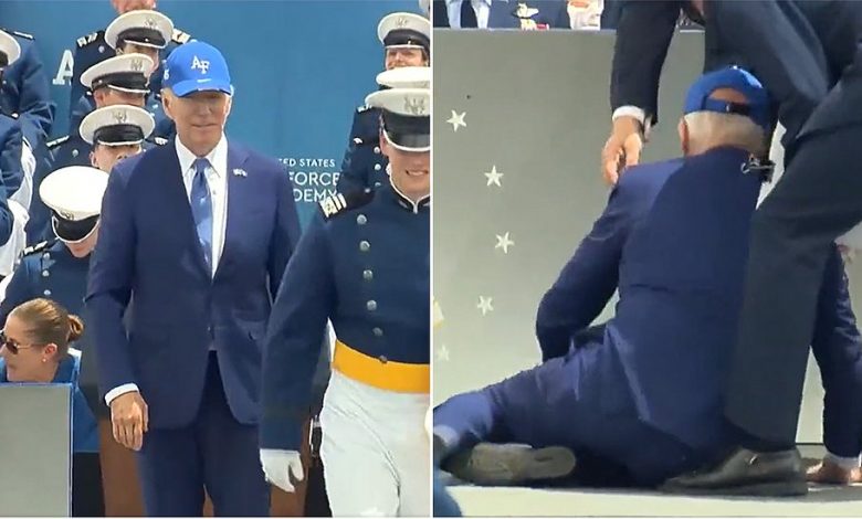 O presidente dos Estados Unidos, Joe Biden, caiu durante uma cerimônia de formatura na Academia da Força Aérea americana nesta quinta-feira, 1. Biden, de 80 anos, apertava a mão de um dos formados, quando tropeçou e caiu. Ele foi socorrido e sentado em poucos segundos.