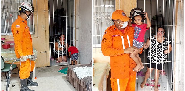 Bombeiros resgatam criança de 3 anos que prendeu a cabeça em grade
