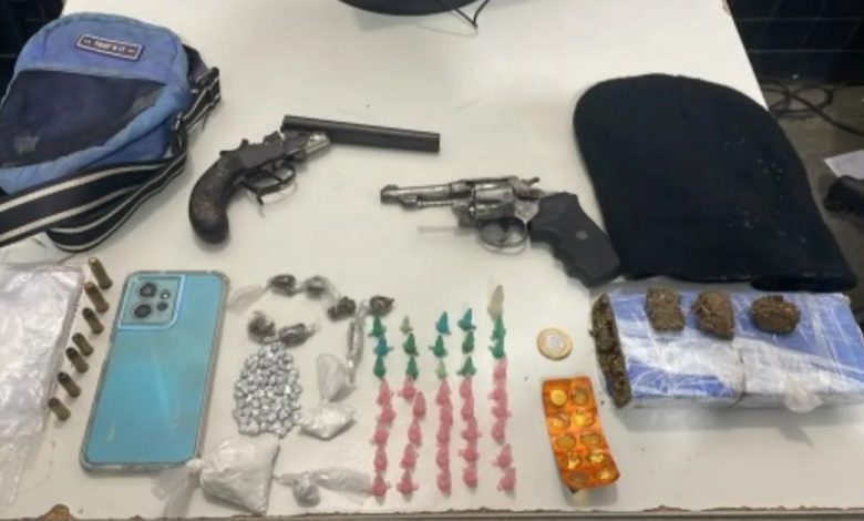 Durante a abordagem, os policiais encontraram o suspeito com armas de fogo, munições e diversos entorpecentes.