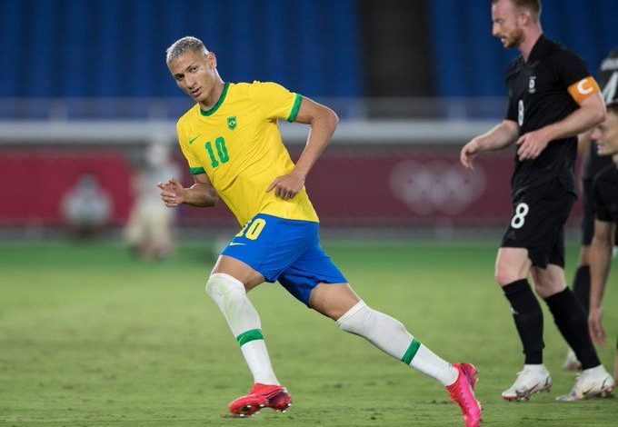 A seleção brasileira venceu a Alemanha nesta quinta-feira (22), por 4 a 2, no duelo de estreia na Olimpíada de Tóquio (Japão). Triunfo com direito a hat-trick do atacante Richarlison, que marcou os três primeiros gols na etapa inicial da partida, válida pelo Grupo D, no Estádio de Yokohama, na cidade de mesmo nome, na povíncia de Kanagawa.