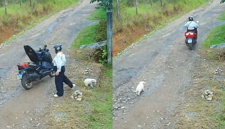 Nas gravações que foram divulgadas nas redes sociais, é possível ver a mulher retirando o cão de dentro do compartimento de bagagem da moto, colocando-o no chão e saindo com o veículo, enquanto o animal ainda tenta correr atrás dela.