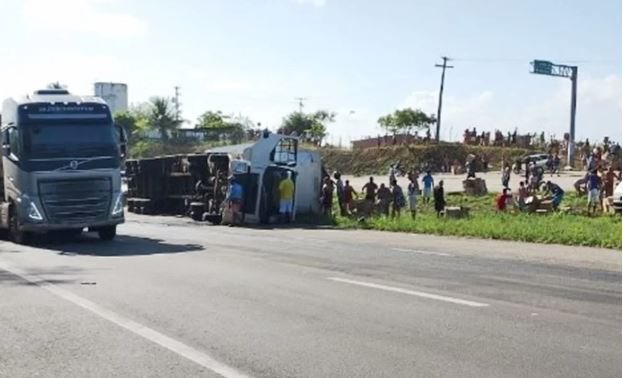 Uma carreta que transportava uma carga de biscoitos foi saqueada por populares após tombar na manhã deste domingo (25), na BR-101, no município de São Brás, interior de Alagoas. A informação é do portal Metrópoles.
