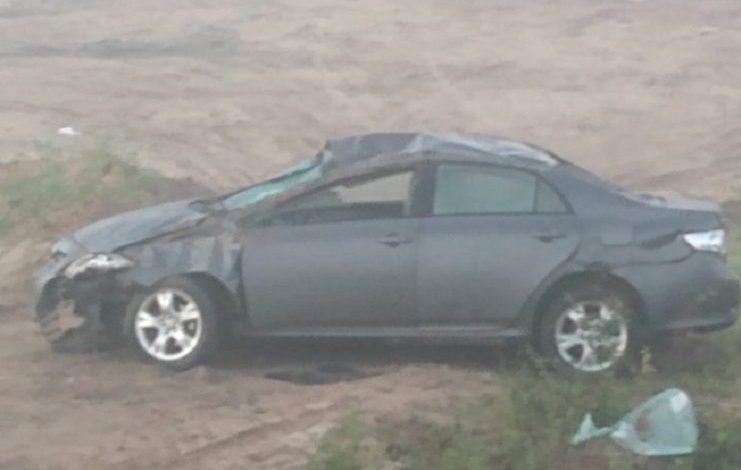 Carro Corolla capota às margens da BR-101, em Cruz das Almas-BA