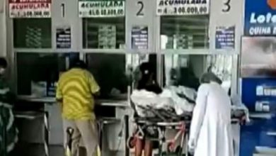 Internada em um hospital, uma idosa foi levada de ambulância e em cima de uma maca a uma casa lotérica…