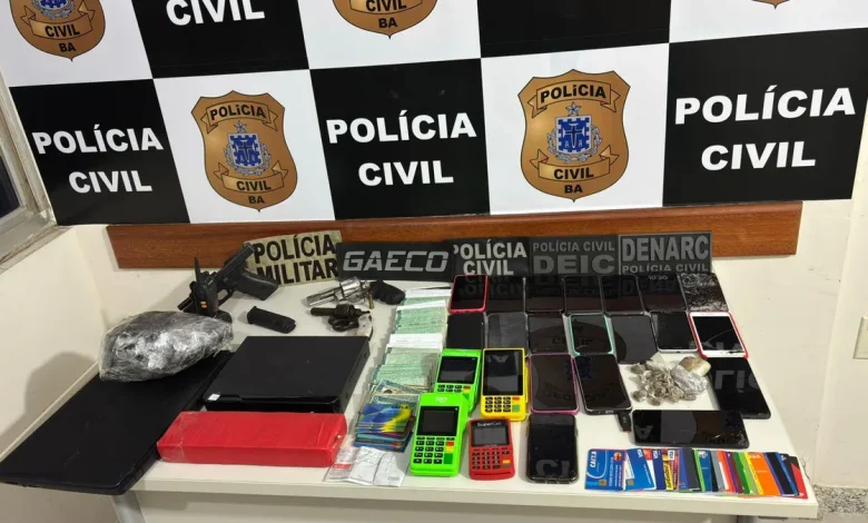 Além das prisões, a operação resultou na apreensão de três armas de fogo, drogas, celulares, máquinas de cartão, cartões bancários, notebook, pendrives, DVR, rádio comunicador e documentos de veículos.