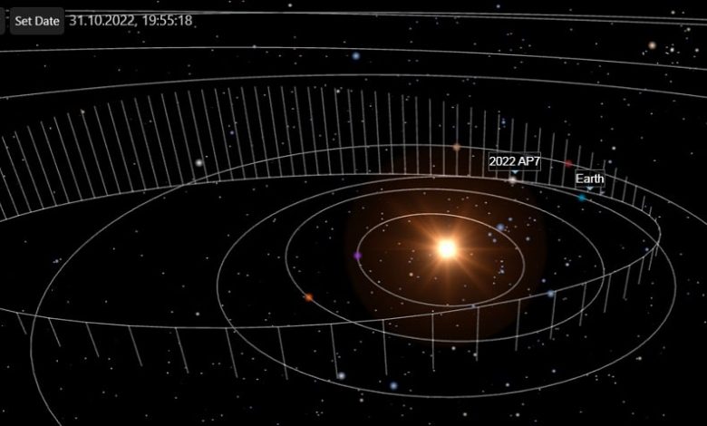 Um asteroide de um quilômetro e meio de largura, com pequena possibilidade de se chocar com a Terra no futuro, foi descoberto por cientistas no Chile. Batizada de 2022 AP7, a rocha foi encontrada em um local difícil de detectar objetos devido ao brilho do sol.