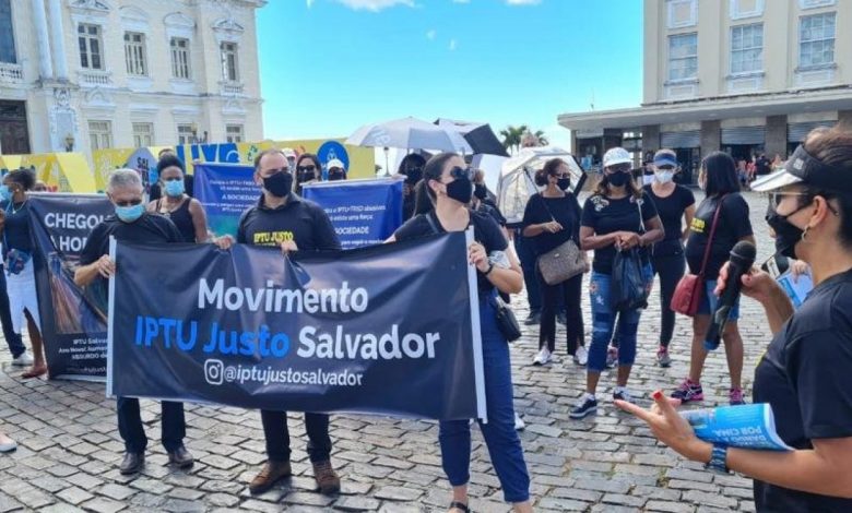 O grupo, chamado de “Movimento IPTU Justo Salvador”, carregava cartazes com reclamações sobre diferença de valores entre taxas cobradas para vários condomínios. A manifestação foi encerrada por volta das 16h.