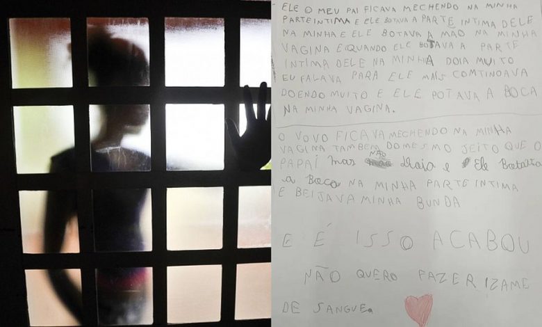 Uma menina de 9 anos revelou, através de uma carta escrita à mão, que sofria abusos sexuais do próprio pai e do avô. A criança denunciou os estupros em junho deste ano mas, até o momento, ninguém foi preso. O caso aconteceu em São José dos Campos, em São Paulo.