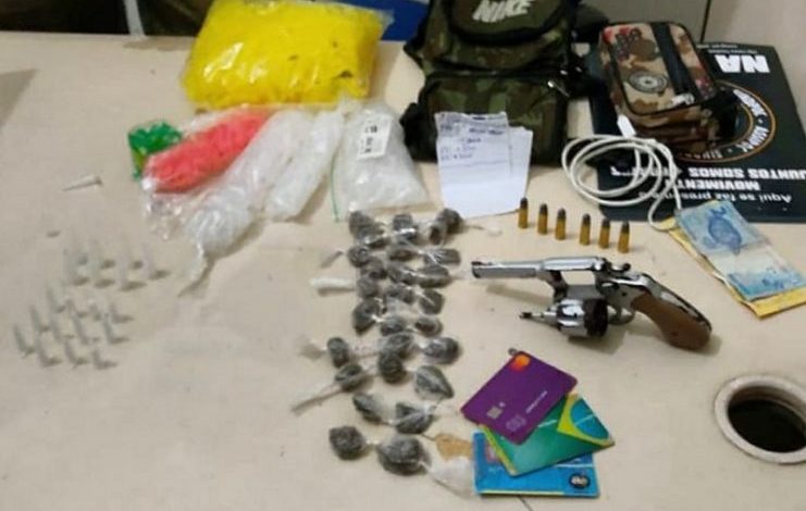 Dois homens foram presos com arma e drogas na noite de ontem, 08, em Muritiba. Segundo a 27ª CIPM, uma guarnição da PM estava realizando rondas ostensivas na localidade quando suspeitos tentaram fugir ao avistarem a viatura, por volta das 20h30. Durante as buscas, os militares conseguiram apreender uma arma calibre 32, seis munições, 19 pinos de cocaína, embalagens para armazenar a droga e 28 trouxas de maconha. A dupla juntamente com o material apreendido foram apresentados na Delegacia Territorial.