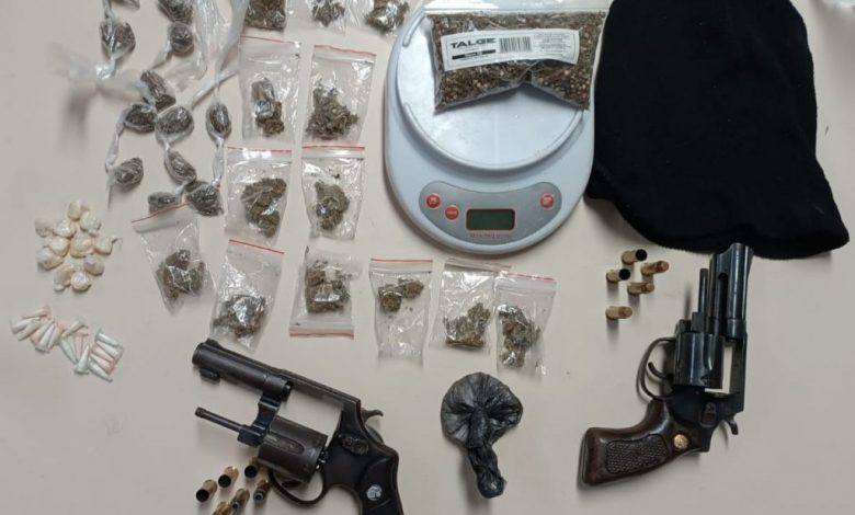 Ainda de acordo com a PM, com os suspeitos foram encontrados dois revólveres calibre 38, 28 trouxinhas de maconha e 15 pinos contendo cocaína e outros materiais