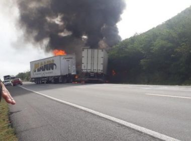 Duas carretas pegam fogo após colisão frontal na BR-116, em Jequié-BA