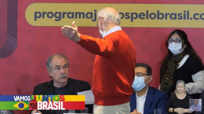 “[Quero] entregar ao Aloizio Mercadante a proposta que não foi considerada ainda, entre os itens principais, a instituição da renda básica de cidadania, aprovada por todos os partidos, sancionada pelo presidente Lula e está no programa do PT há muito anos, todo ano. Ele tem alguma coisa comigo, não me convidou para esta reunião. Você sabe com quem que eu soube da reunião? Ontem à noite. ‘Você não vai à reunião do partido?’. Não fui convidado, mas hoje eu estou aqui. E continuarei trabalhando muito para que Lula e Alckmin instituam a renda básica de cidadania enquanto eu estiver vivo ainda”, disse o ex-senador de pé, fora dos microfones.
