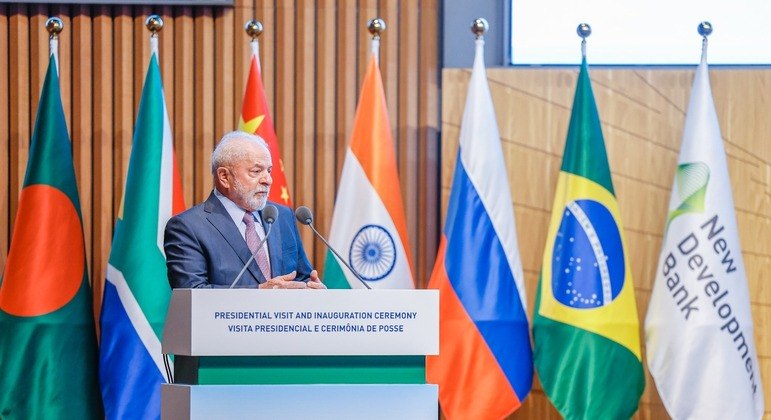 “Hoje, um país precisa correr atrás de dólar para poder exportar, quando ele poderia exportar na própria moeda. Os bancos centrais certamente poderiam cuidar disso. Por que um banco, como o do Brics, não pode ter uma moeda que possa financiar a relação comercial entre Brasil e China? E entre outros países dos Brics?”, questionou.