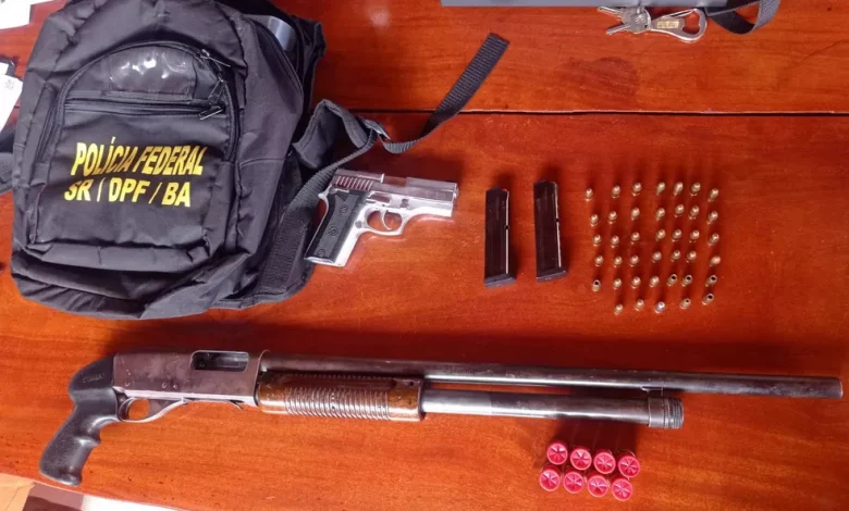 Durante a busca e apreensão, foi encontrada uma espingarda, e devido a apreensão da arma, houve detenção em flagrante, para averiguação e esclarecimentos.