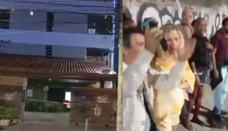 No vídeo, que repercutiu na web nesta segunda-feira (22), o homem apareceu convocando uma verdadeira plateia só para registrar o momento em que a mulher iria sair do estabelecimento com seu amante.