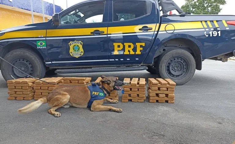 O cão farejador K9 Kaleo foi utilizado para verificar as caixas e sinalizou a presença de substância. A equipe realizou uma fiscalização detalhada da carga e encontrou 100 kg de maconha.