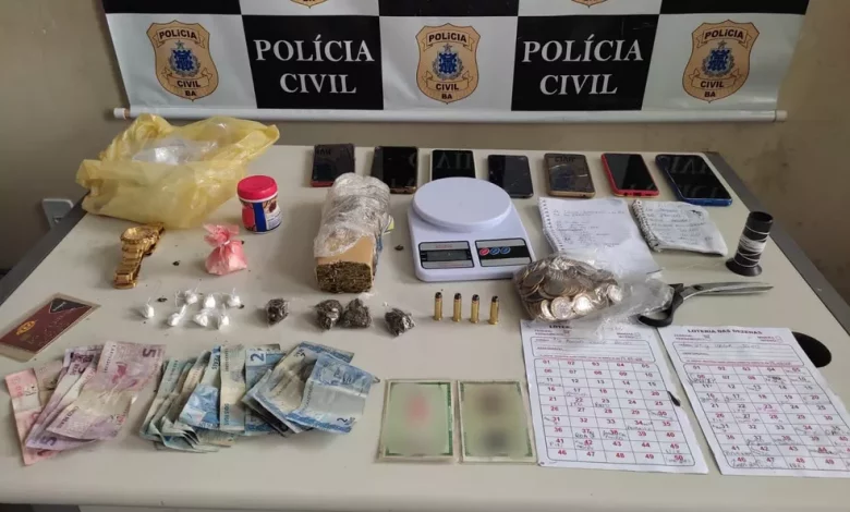 De acordo com a Polícia Civil, durante diligências foi realizada a apreensão de porções de drogas, munições, uma balança, cadernos com anotações do tráfico, além de sete celulares, R$ 236, em espécie, e utensílios para fracionar e embalar entorpecentes. Todo material deve ser periciado no Departamento de Polícia Técnica (DPT).
