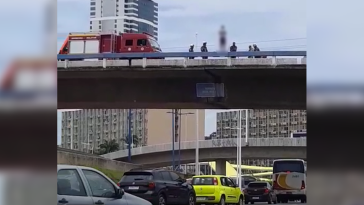 Homem é resgatado após tentar pular de viaduto na Av. ACM/Salvador