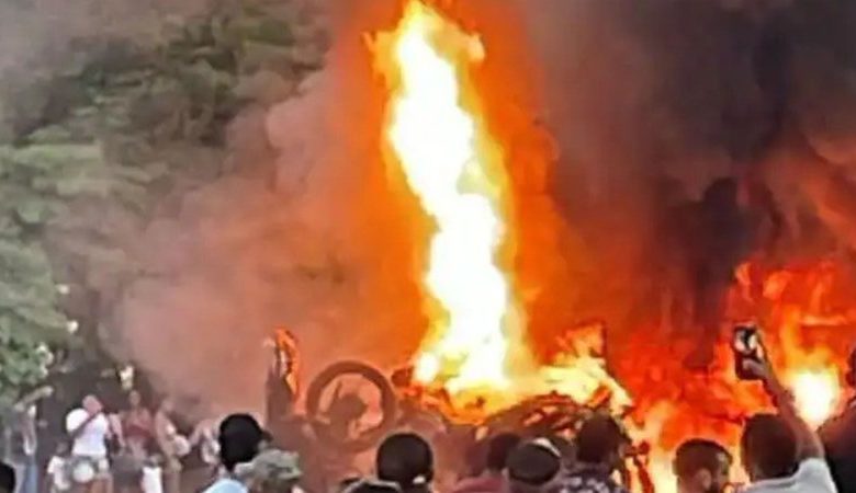 A situação aconteceu nesta terça-feira (25), em frente à Delegacia de Polícia Civil do município e resultou em um incêndio que atingiu outras motos apreendidas e o próprio caminhão.