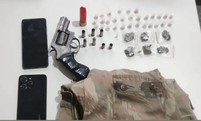 Durante a abordagem, os policiais encontraram com os suspeitos um revólver calibre .38, munições e uma quantidade não especificada de drogas ilícitas. Os indivíduos foram detidos no local e conduzidos à delegacia para a adoção das medidas cabíveis.
