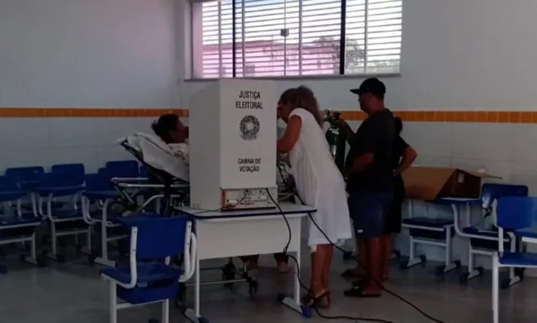 Uma idosa de 68 anos fez questão de votar, mesmo deitada em uma cama hospitalar, no colégio municipal da cidade de Queimadas, no norte da Bahia.
