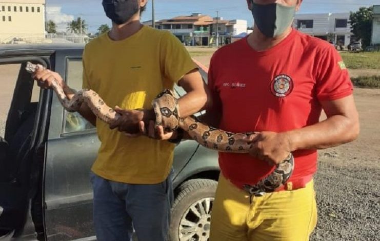 Jiboia é resgatada no centro da cidade de Governador Mangabeira-BA