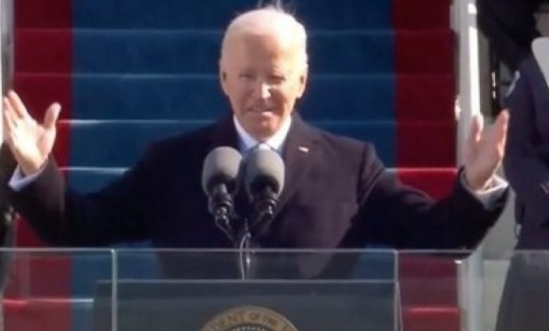 “Neste mesmo chão, onde há poucos dias, a violência tentou abalar a fundação desta capital, nós nos juntamos como uma única nação, para conduzir uma transferência de poder pacífica, como nos últimos 200 anos”.