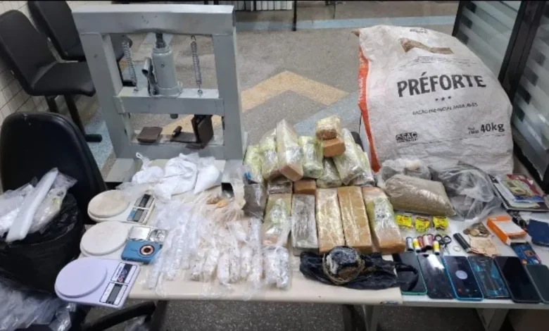 No interior do imóvel, os militares encontraram uma estrutura montada para o refino e a embalagem de substâncias ilícitas, caracterizando um verdadeiro laboratório do tráfico.