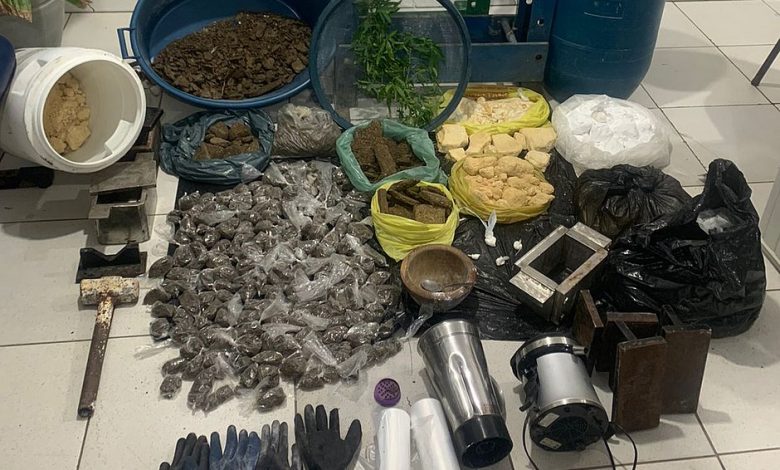 Uma laboratório para refino de drogas foi desmontado na segunda-feira (25), na cidade de Santa Bárbara, na Bahia. No local, equipes do 16º Batalhão de Polícia Militar (BPM/Serrinha) encontraram 26 kg de drogas, incluindo maconha, cocaína e crack, informou a polícia nesta terça.