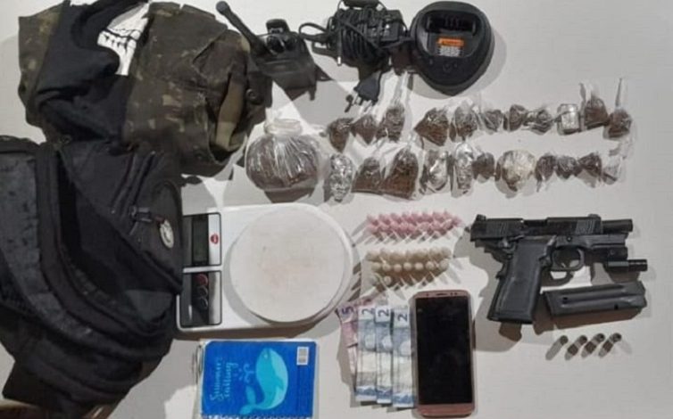 Com o homem foram apreendidos também uma balança, um celular, um rádio transmissor, roupa camuflada, balaclava e uma pequena quantia em dinheiro.
