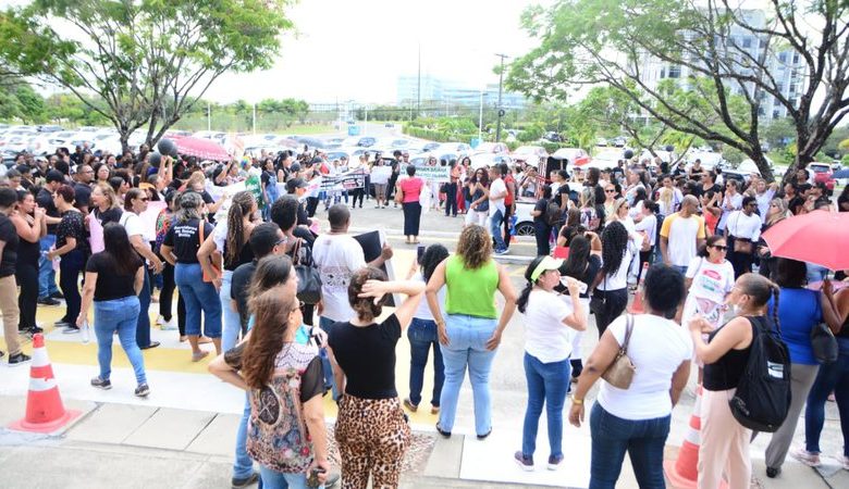 Guiados por gritos como “Não vai ter arrego, ou paga nosso piso, ou não vai ter sossego”, os profissionais de enfermagem também levantaram cartazes e faixas com as seguintes frases: “Não à complementação do Piso Salarial de Enfermagem com a GID” e “Onde estão os R$ 273.000.000,00 repassados pelo Governo Federal?”.