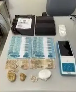 Na residência indicada, os policiais encontraram a mãe da jovem e apreenderam outros materiais, como 02 pedras brutas de uma substância semelhante ao crack, 05 pedras de crack prontas para venda, 01 pacote com pó branco, provavelmente cocaína, 05 celulares e 01 máquina de cartão.