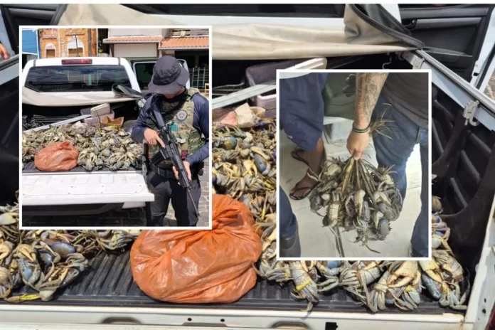 Durante a operação de defeso do caranguejo, foram feitas fiscalizações em locais de captura e abordagens a pescadores. Ao final, foram apreendidos 520 caranguejos-uçá e 1.035 guaiamuns.