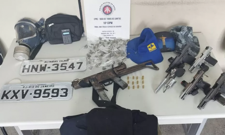 Equipes da 18ª Companhia Independente recolheram seis armas de fogo, munições, drogas, dentre outros materiais, na rua 8 de Maio, localidade conhecida como “Baixada”, no bairro de Periperi, em Salvador.