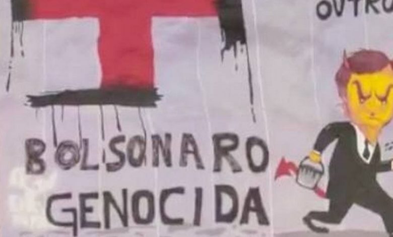 Um grupo com quatro manifestantes foi preso na tarde de hoje (18), em Brasília, ao estender uma faixa chamando o presidente Jair Bolsonaro de “Genocida”. A autuação foi realizada pela Polícia Federal com base na Lei de Segurança Nacional. A advogada e deputada federal Nathália Bonavides (PT-RN) se manifestou em sua rede social em apoio ao grupo e se dirigiu a sede da PF. A faixa chamava o presidente de “genocida” e o associava a uma suástica, símbolo do regime nazista de Adolf Hitler na Alemanha, que foi responsável por uma política de extermínio de 6 milhões de judeus, segundo cálculos de historiadores.