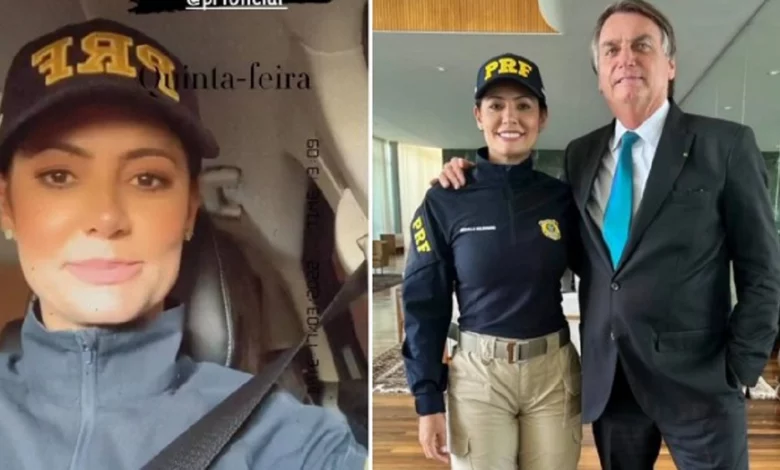 A primeira-dama Michelle Bolsonaro apareceu vestida de uma forma inesperada nesta quinta-feira (17). Ao lado do presidente Jair Bolsonaro (PL), surgiu com o fardamento da Polícia Rodoviária Federal (PRF). As imagens foram postadas nos stories do perfil da primeira-dama no Instagram.