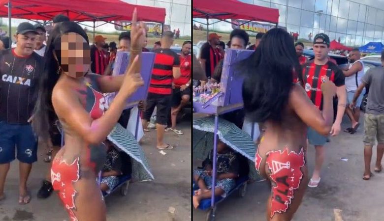 Uma mulher, torcedora do Vitória, foi flagrada andando pelo estacionamento do Estádio Manoel Barradas, o Barradão, no último domingo (14). Um vídeo que circula nas redes sociais a mulher aparece completamente nua.