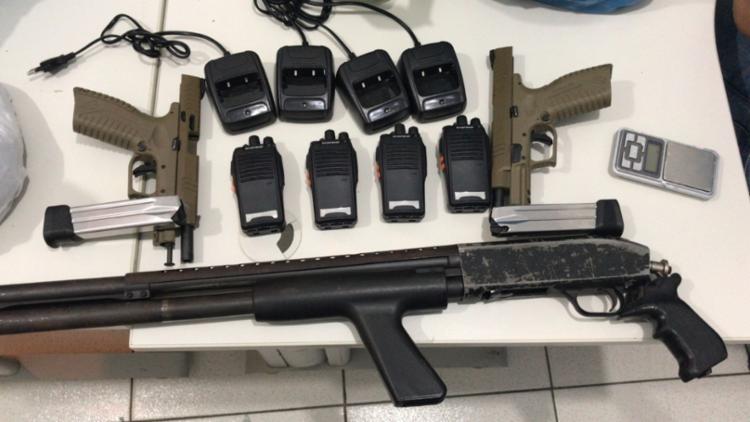Segundo o titular da DT da cidade, delegado Shangai Alexandre Ramos Rocha, os agentes encontraram duas pistolas de fabricação croata calibre 9mm, dois revólveres calibres 38 e 32, além de uma espingarda calibre 12. Ainda de acordo com o agente, fazem parte da apreensão 296 munições de diferentes calibres, mais de 80 porções de cocaína de variados tamanhos, mais de 179 buchas de maconha, embalagens vazias, seis rádios comunicadores, uma balança e um veículo Ford Ka, placa PWZ-1188.