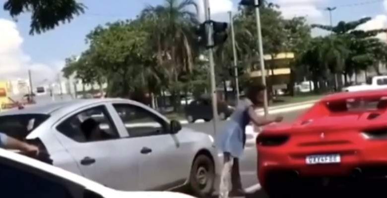 Um vídeo que circula nas redes sociais mostra uma cena para lá de inusitada, registrada em uma sinaleira da Praça Walter Santos, no setor Coimbra, em Goiânia, na manhã do último sábado (6). Na ocasião, o filho do empresário Alcir Marques de Morais dirigia uma Ferrari, quando parou no sinal e foi abordado por uma mulher que, segundo ele, pediu dinheiro ao rapaz. Contudo, segundo o G1, depois de o herdeiro de Alcir dizer que não tinha dinheiro para oferecer à moça, a suposta pedinte fura e arranha o carro de luxo com uma faca.