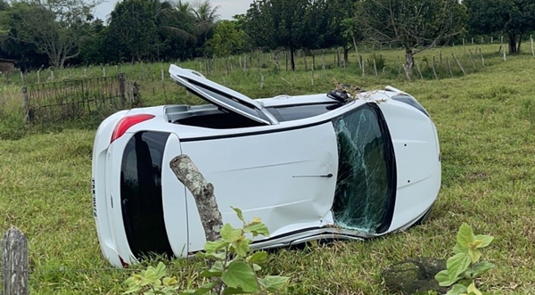 Um veículo modelo Hilux veio a capotou na manhã desta terça-feira (30), na BA 242, trecho que liga Conceição do Almeida ao município de São Felipe.