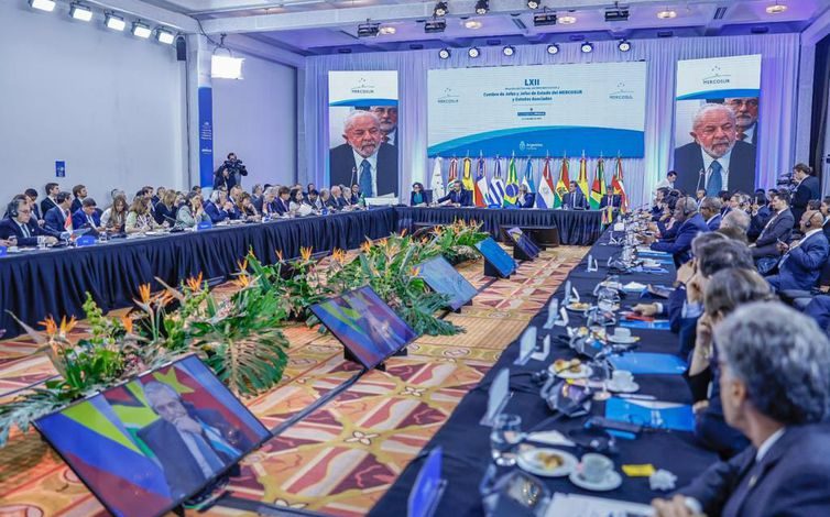 Ao assumir a presidência temporária do Mercosul, o presidente Luiz Inácio Lula da Silva disse, nesta terça-feira (4), que tem uma agenda externa ambiciosa para bloco, na ampliação de mercados para exportação dos produtos locais. Ele reafirmou que o acordo de livre comércio do Mercosul com a União Europeia (UE) é inaceitável e que está comprometido com a conclusão de um tratado equilibrado e que assegure o espaço necessário para adoção de políticas públicas “em prol da integração produtiva e da reindustrialização”.