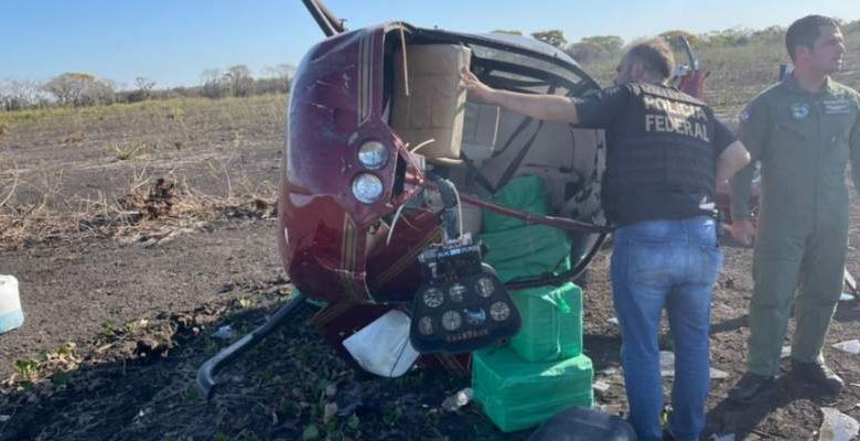 Um helicóptero com aproximadamente 300 kg de cocaína caiu na região do Pantanal, em Poconé (MT), neste domingo (1º). A aeronave foi localizada durante investigações da Polícia Federal, agentes do Centro Integrado de Operações Aéreas (Ciopaer) e do Grupo Especial de Fronteira (Gefron).