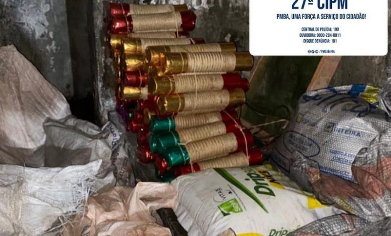 No local, os militares conseguiram apreender 303 espadas prontas, 10 sacos de linhagem com espadas inacabadas, 1 saco de salitre com aproximadamente 20 kg, 5 mãos de pilão para produzir pólvora, 2 pilões grandes, 1 saco contendo limalhas com aproximadamente 20 kg, 1 saco de batedor, 5 sacos com bambu prontos para serem enrolados, cerca de 90 kg de pólvora, 1 máquina artesanal para enrolar o barbante no bambu, 1 peneira, 1 serra com arco, uma porção com aproximadamente 1 kg de boca de cor, 1 kg de cerol, 1 rolo de papel filme, 2 dois macetes, 58 socadores de metal, 1 balde de furão/perfurador, 1 furadeira elétrica, 1 aparelho smartphone, R$ 16,50 em espécie, 6 pássaros silvestres (papagaio) e 1 pássaro silvestre.